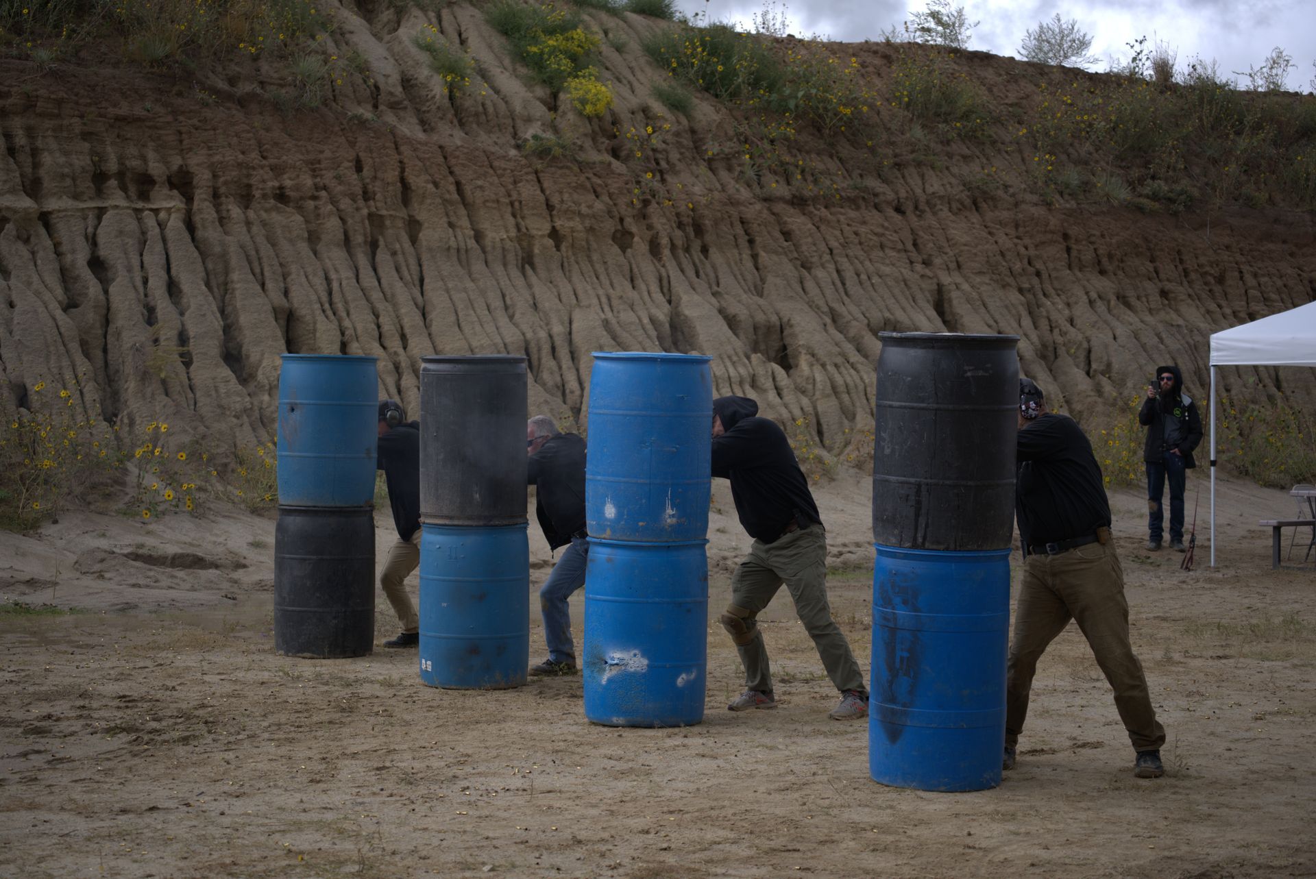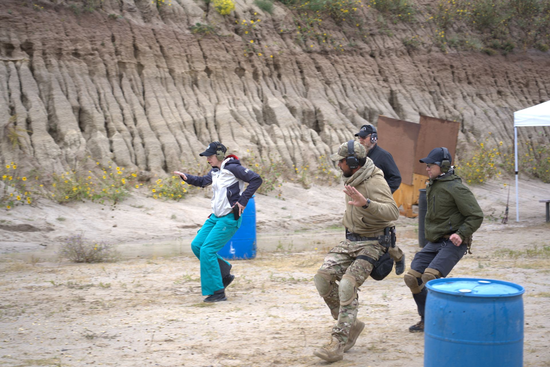 - Shooting from practical positions (standing, behind cover, seated, confined spaces)